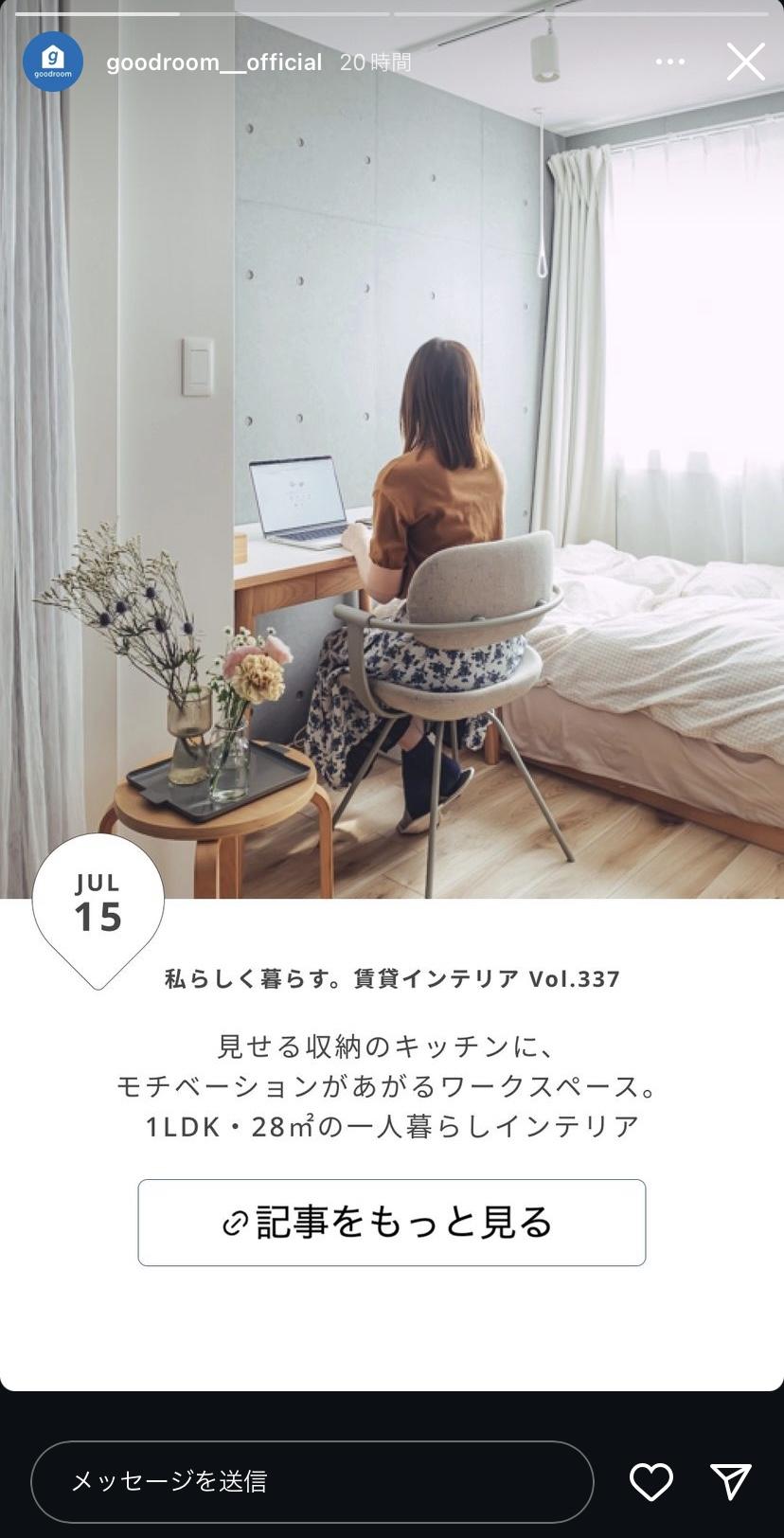 一例として、グッドルーム(@goodroom__official)のストーリーズ投稿をご紹介します。