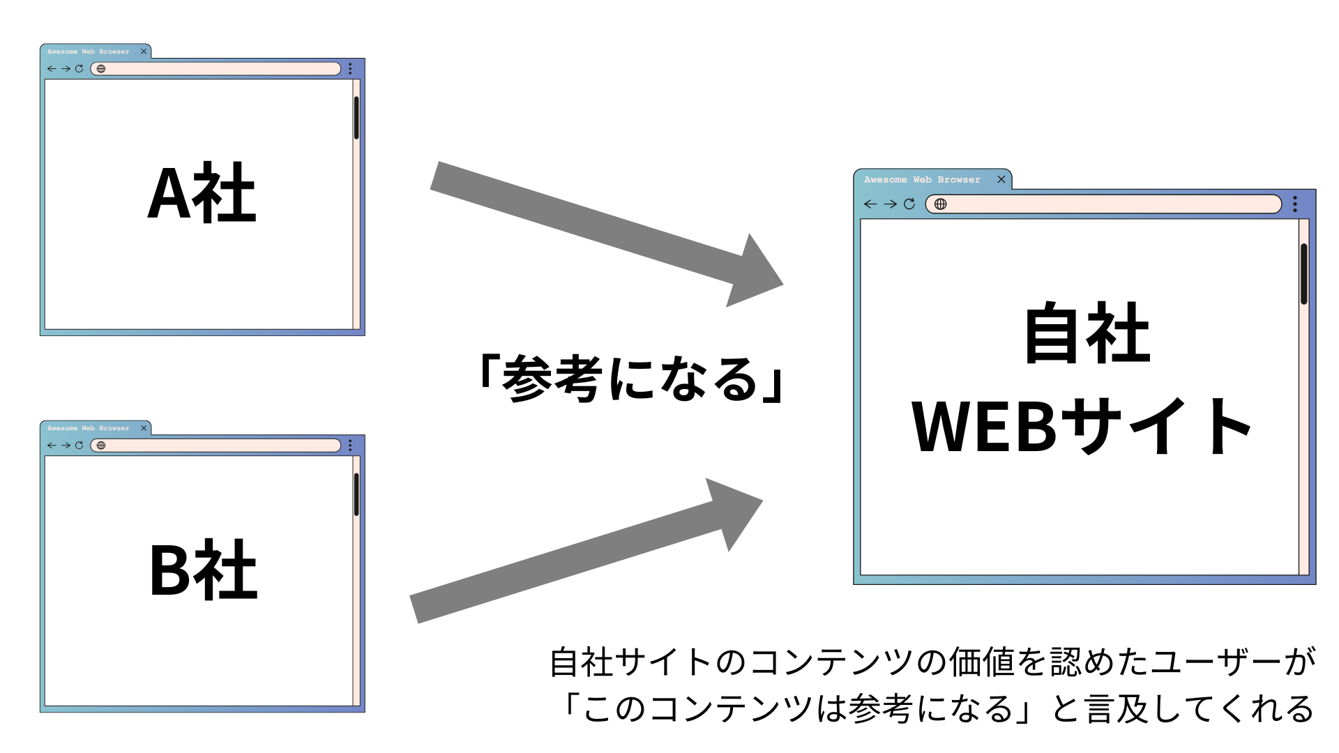 外部リンクは、コンテンツの価値を認めたユーザーが「このコンテンツは参考になりますよ」と自発的に言及することで生まれます。