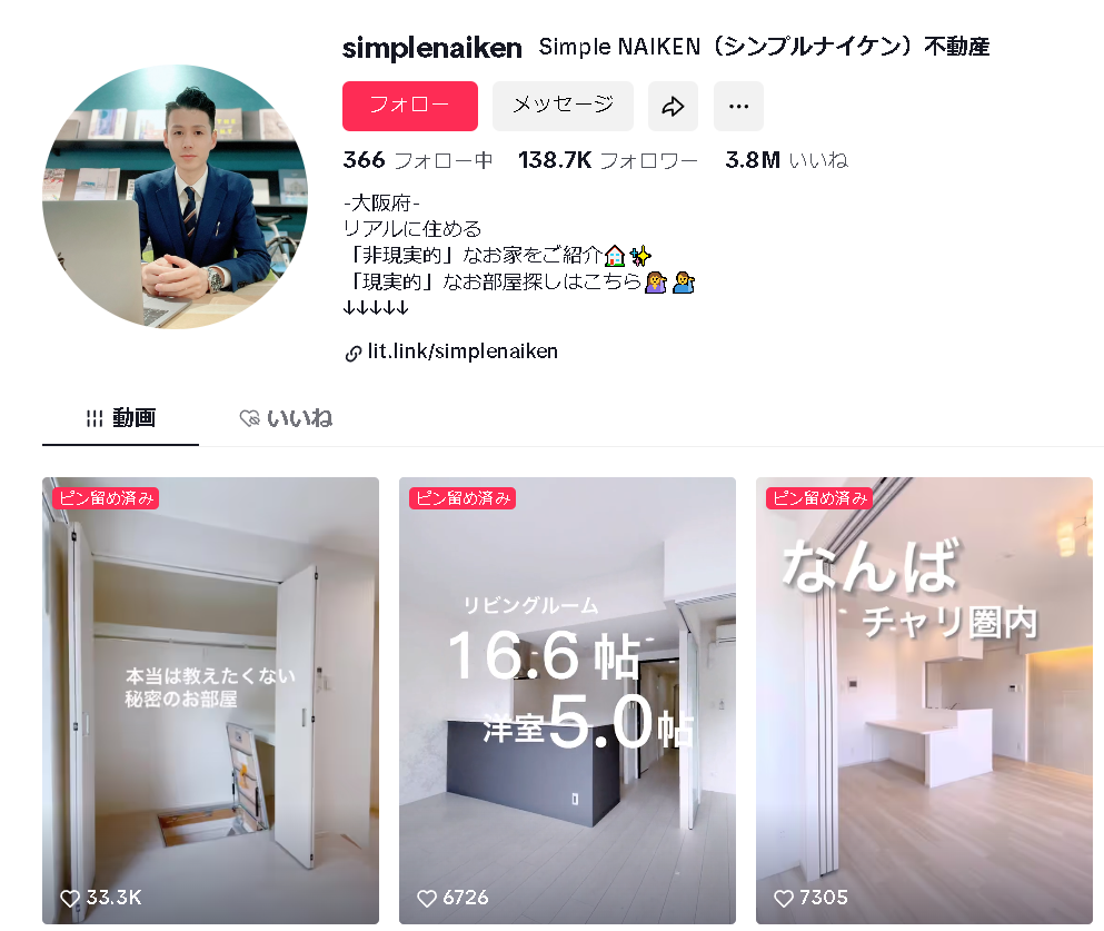 さまざまな業界がTikTokに参入する中、最近では不動産系のアカウントや投稿も増加傾向にあります。