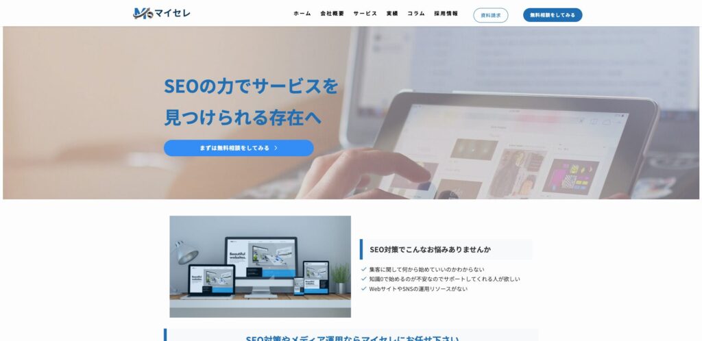 フルオーダー型のSEO対策サービス「WHITE Link」を提供し、累計3,000社以上の支援実績を持ちます。コーポレートサイト・ECサイト・オウンドメディアなど多様なサイト形態に対応し、内部対策・被リンク獲得・SEO記事作成まで一気通貫でサポート。MEO対策や管理ツールの提供も行っており、中規模サイト向けの総合支援が得意です。