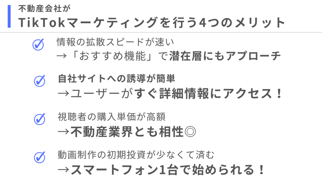 不動産会社がTikTokマーケティングに注力するメリットはたくさんあるんです。