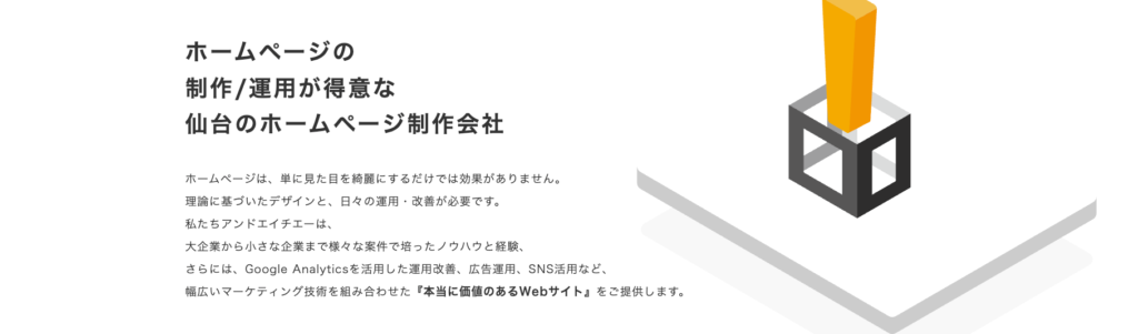 | ネオインデックス仙台 | 実績・信頼 | 高品質・手厚いサポート | S・Aランクのサイト制作。デザイン修正回数無制限で安心。 |