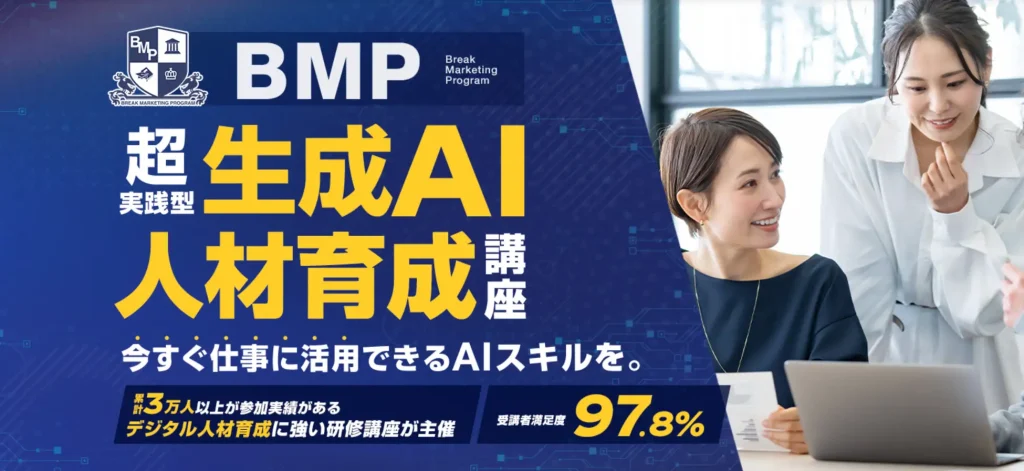 株式会社デジタルゴリラ(本社:宮城県仙台市/代表取締役:菊池 習平、以下「デジタルゴリラ」)は、株式会社ブレイク(本社:大阪府大阪市/代表取締役:小川 佳祐、以下「ブレイク」)が運営するオンラインWebマーケティング講座「Break Marketing Program(BMP)」とパートナーシップを結び、法人向け「超実践型 生成AI人材育成講座」を2025年秋より提供開始します。